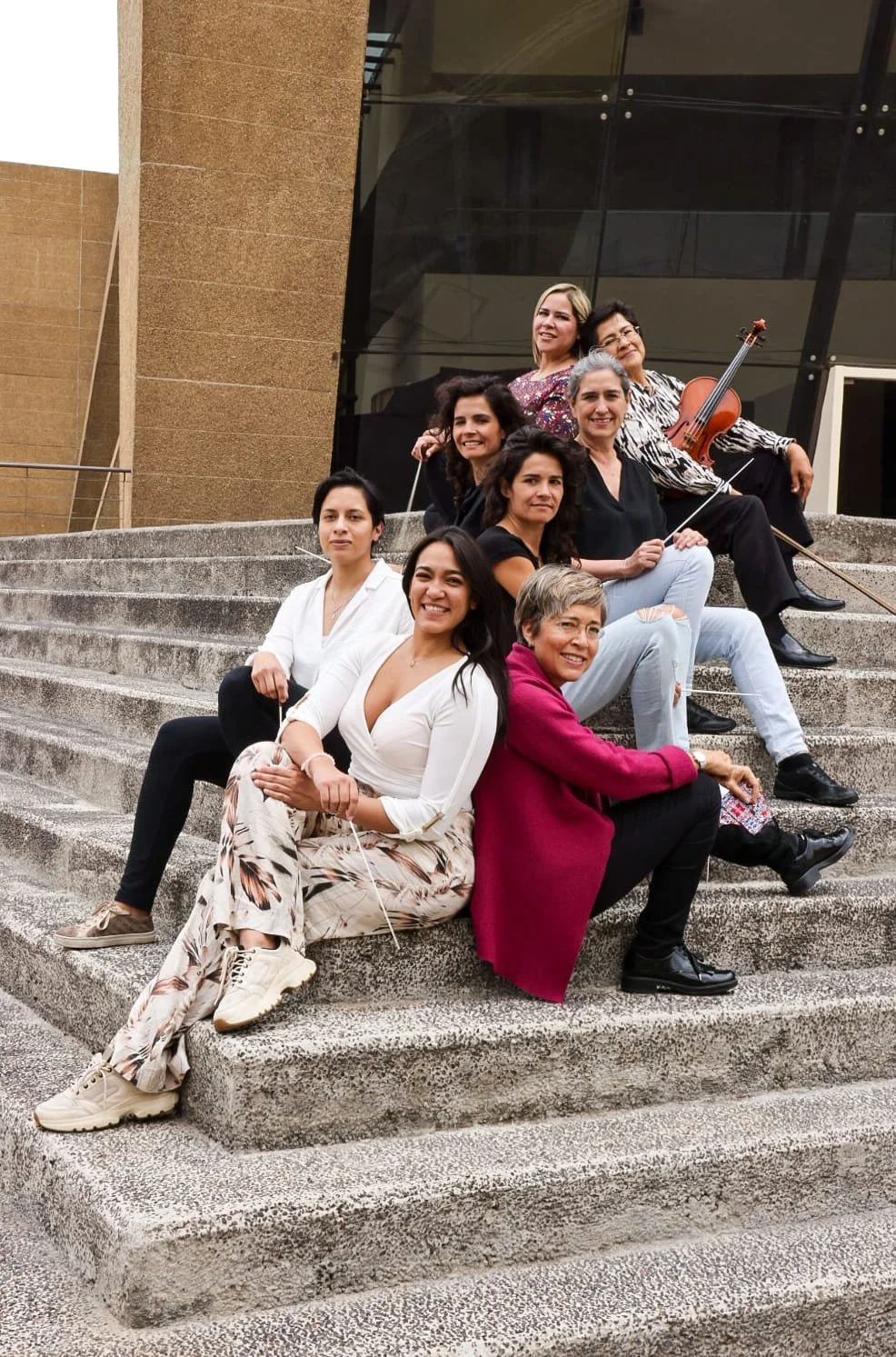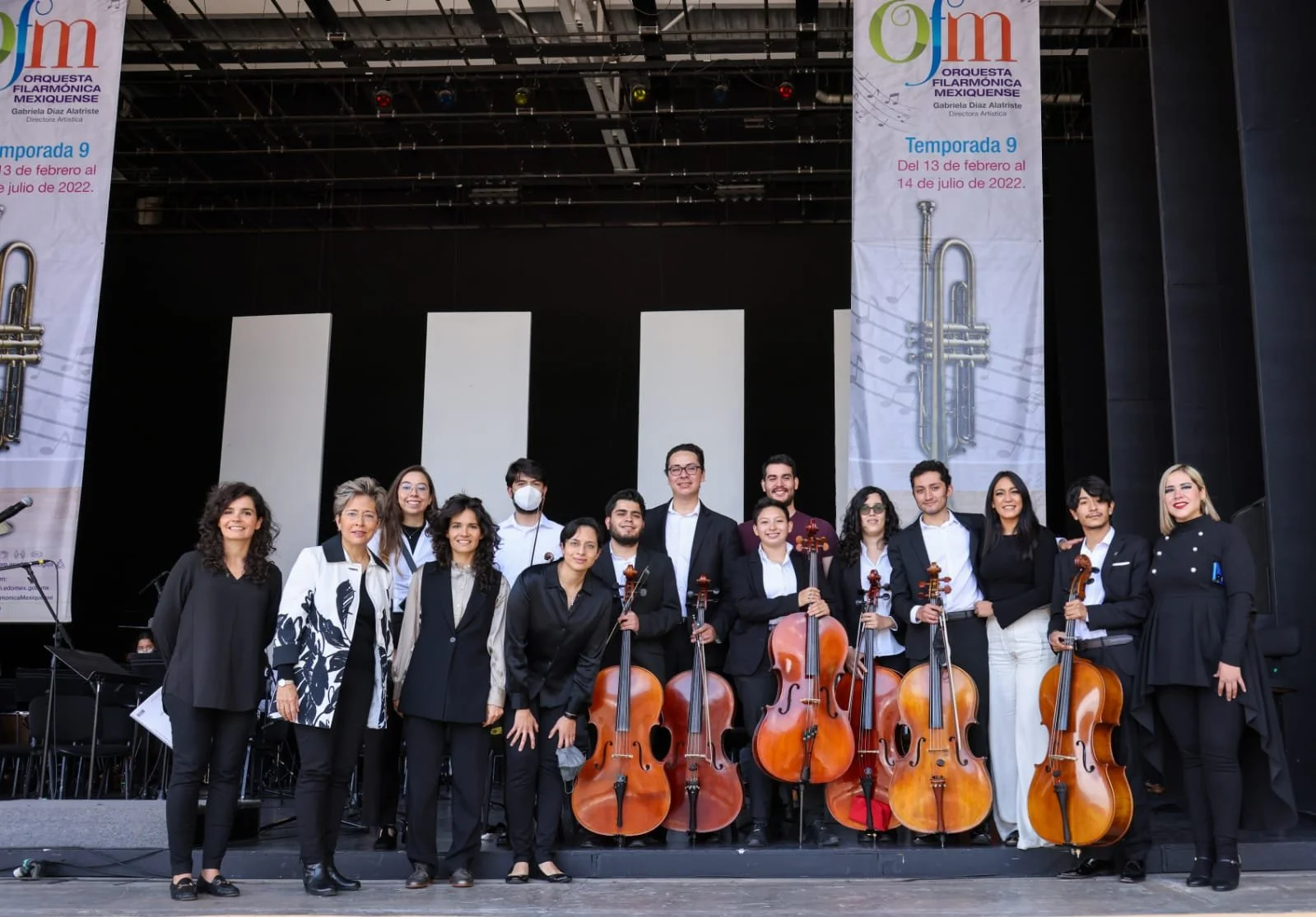 Directoras de orquesta junto a integrantes de la Orquesta Filarmónica Mexiquense